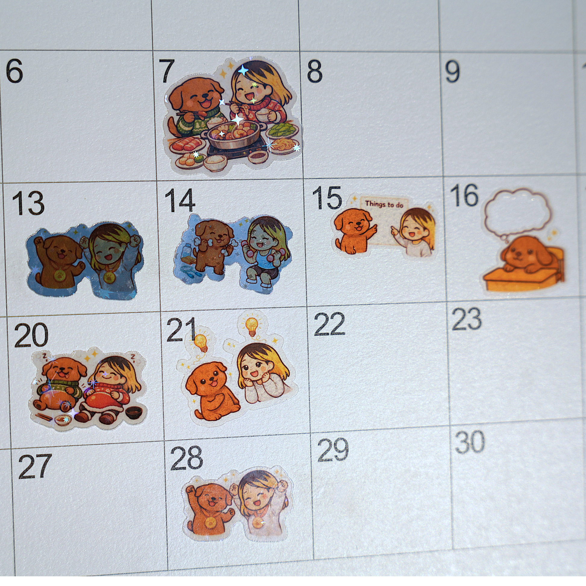 Meet the first chapter of Soondol & Me! This adorable sticker sheet features 30+ precious moments capturing the everyday adventures of a girl and her dog. From cozy reading sessions to playful moments, each sticker tells a story of unconditional love and companionship. Perfect for bringing warmth and personality to your planners, journals, and creative projects. 🐾